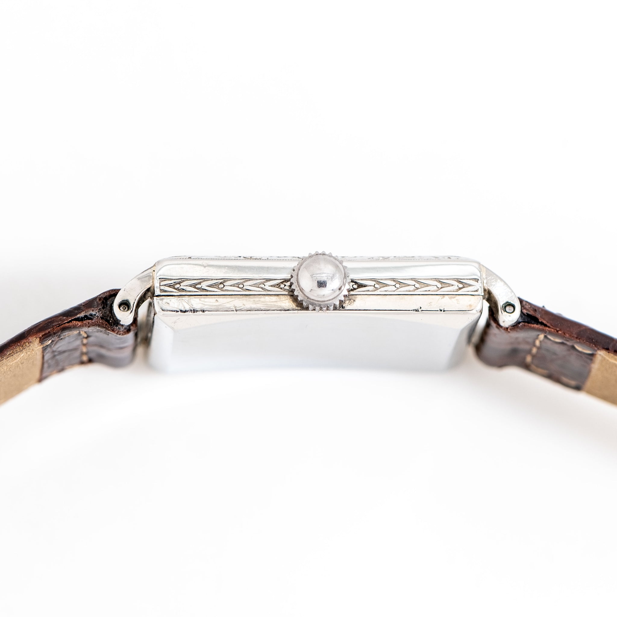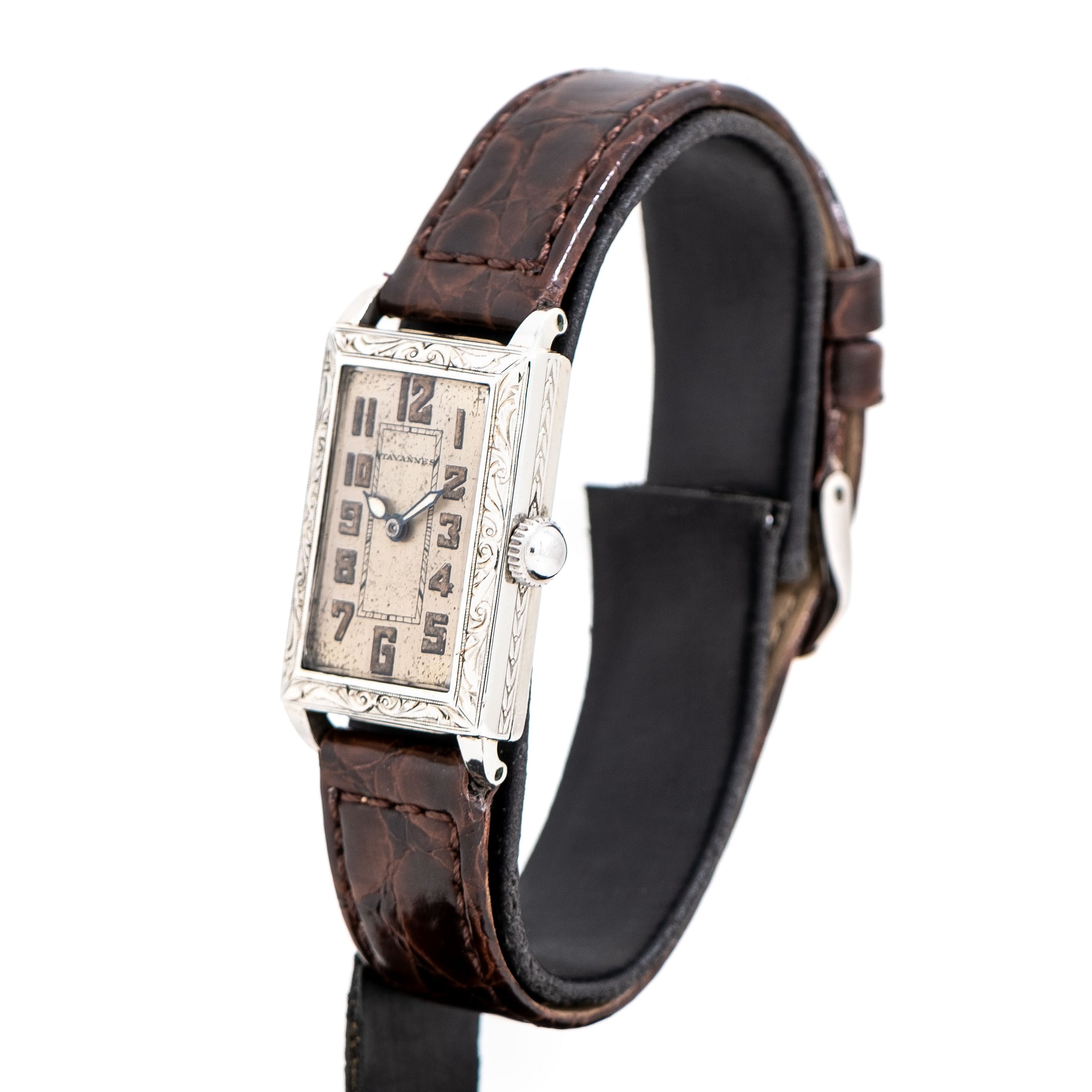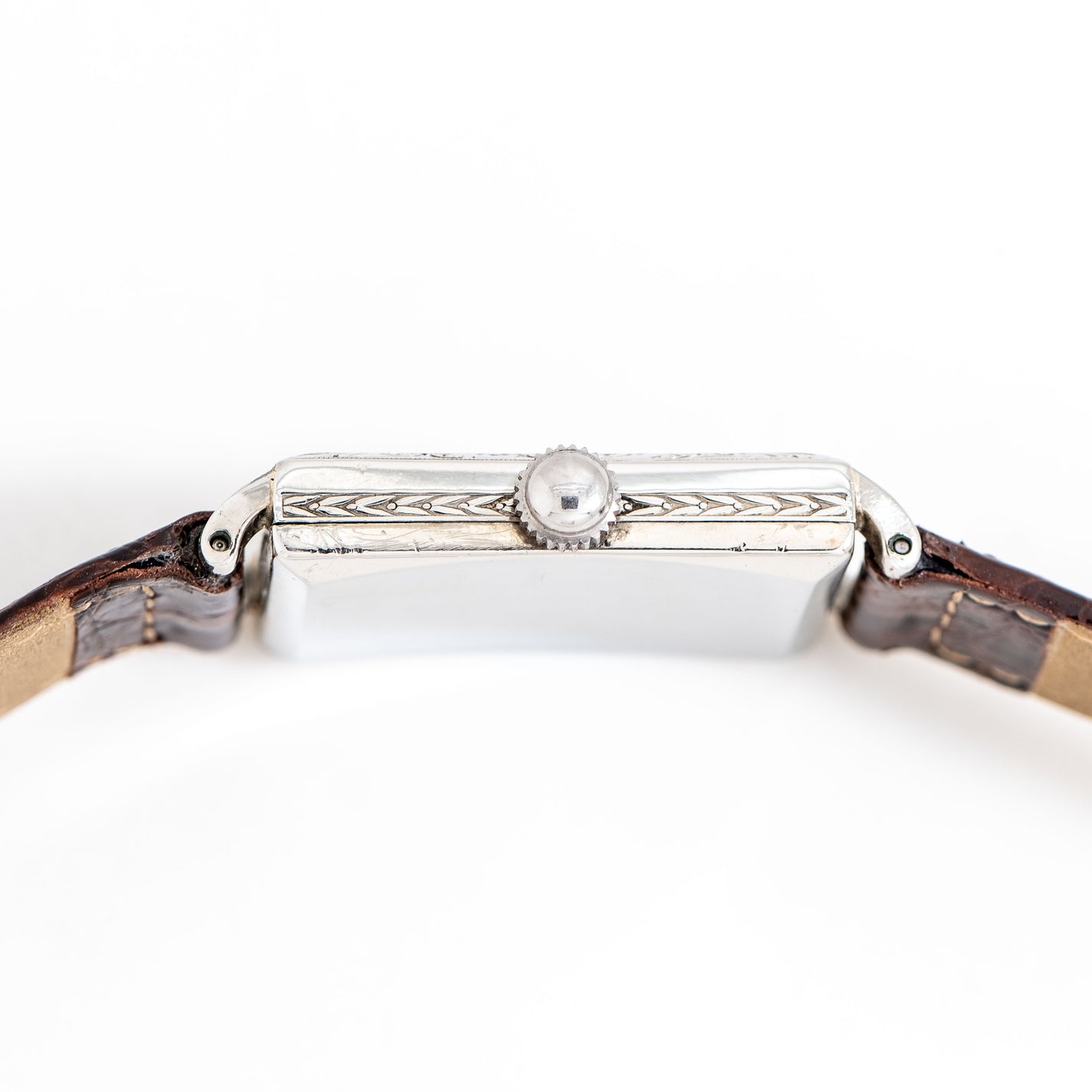 1930's Vintage Tavannes "Tank" Style 14k White Gold Filled Watch (# 15801)