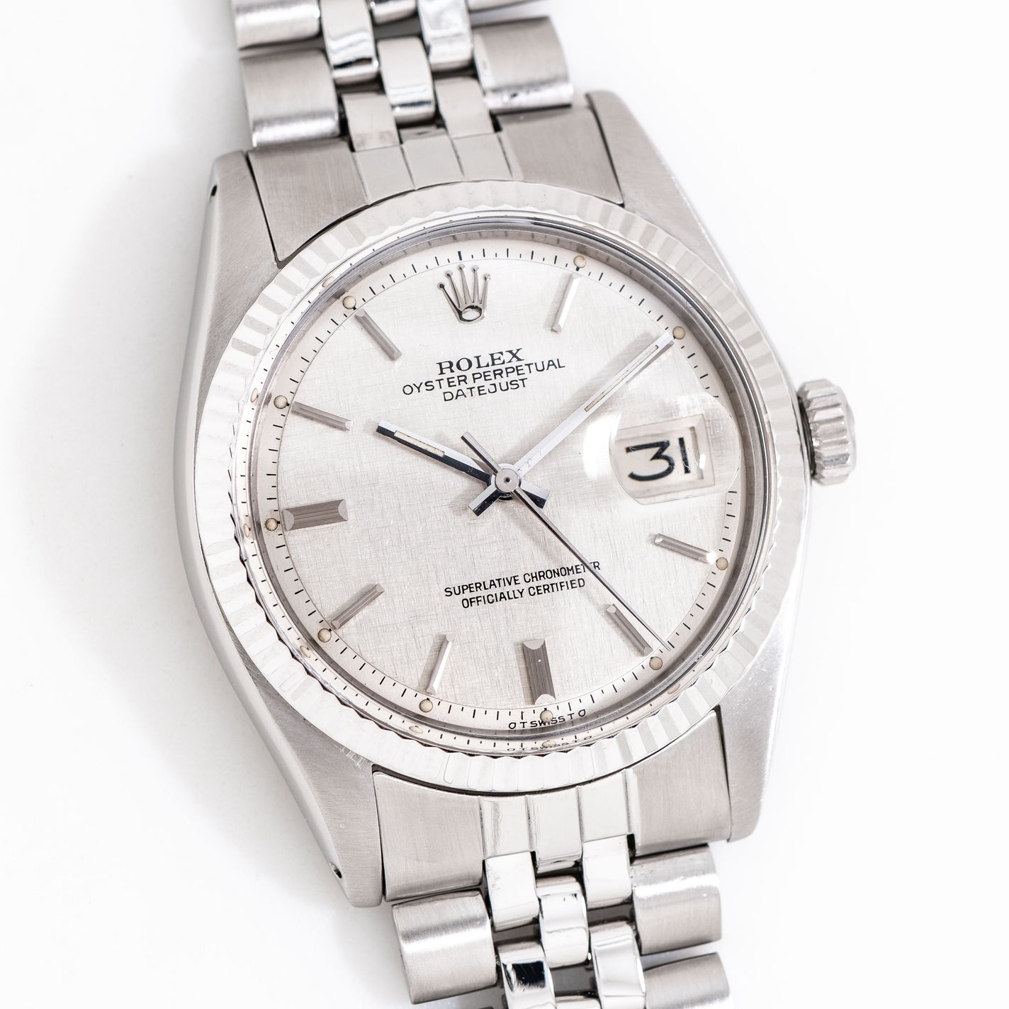 1971 Vintage Rolex Datejust Sigma Linen Dial Ref. 1601 in 14k White Gold & Stainless Steel ( #15569)