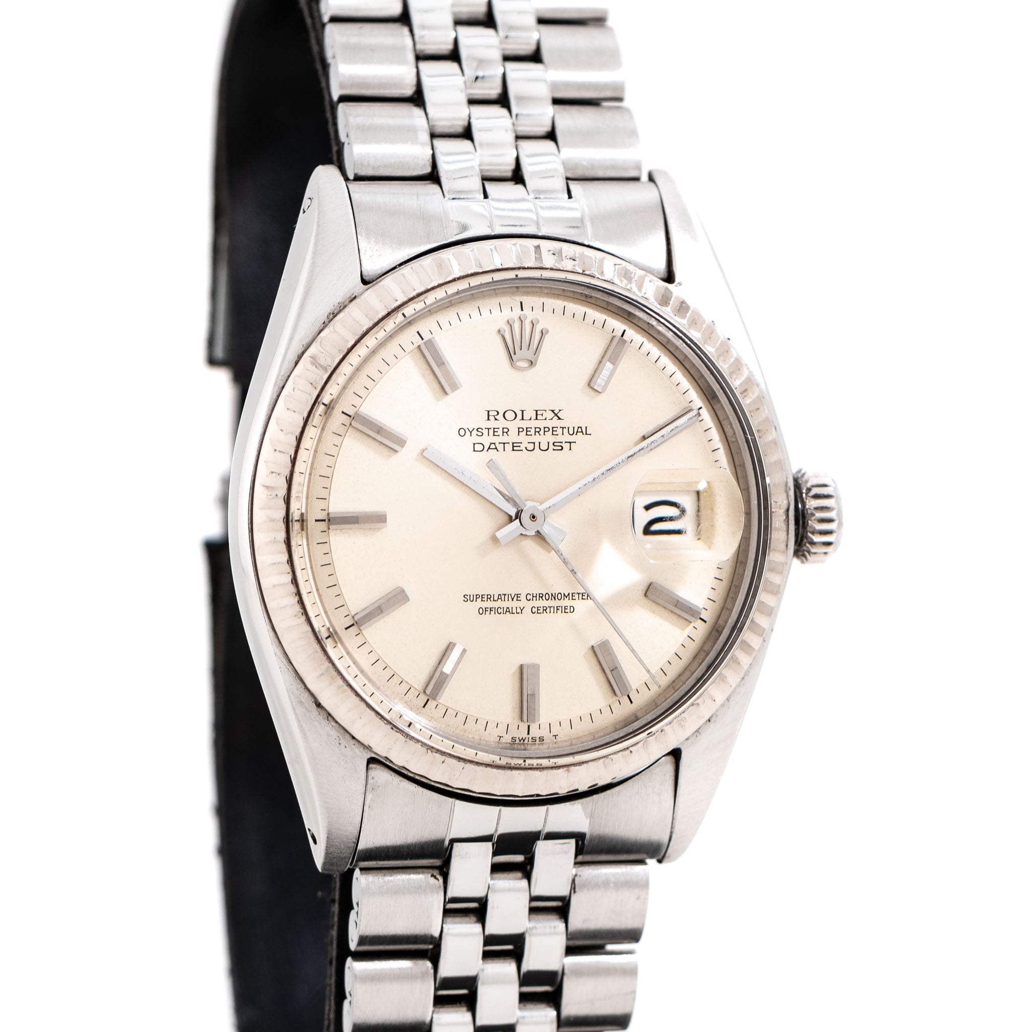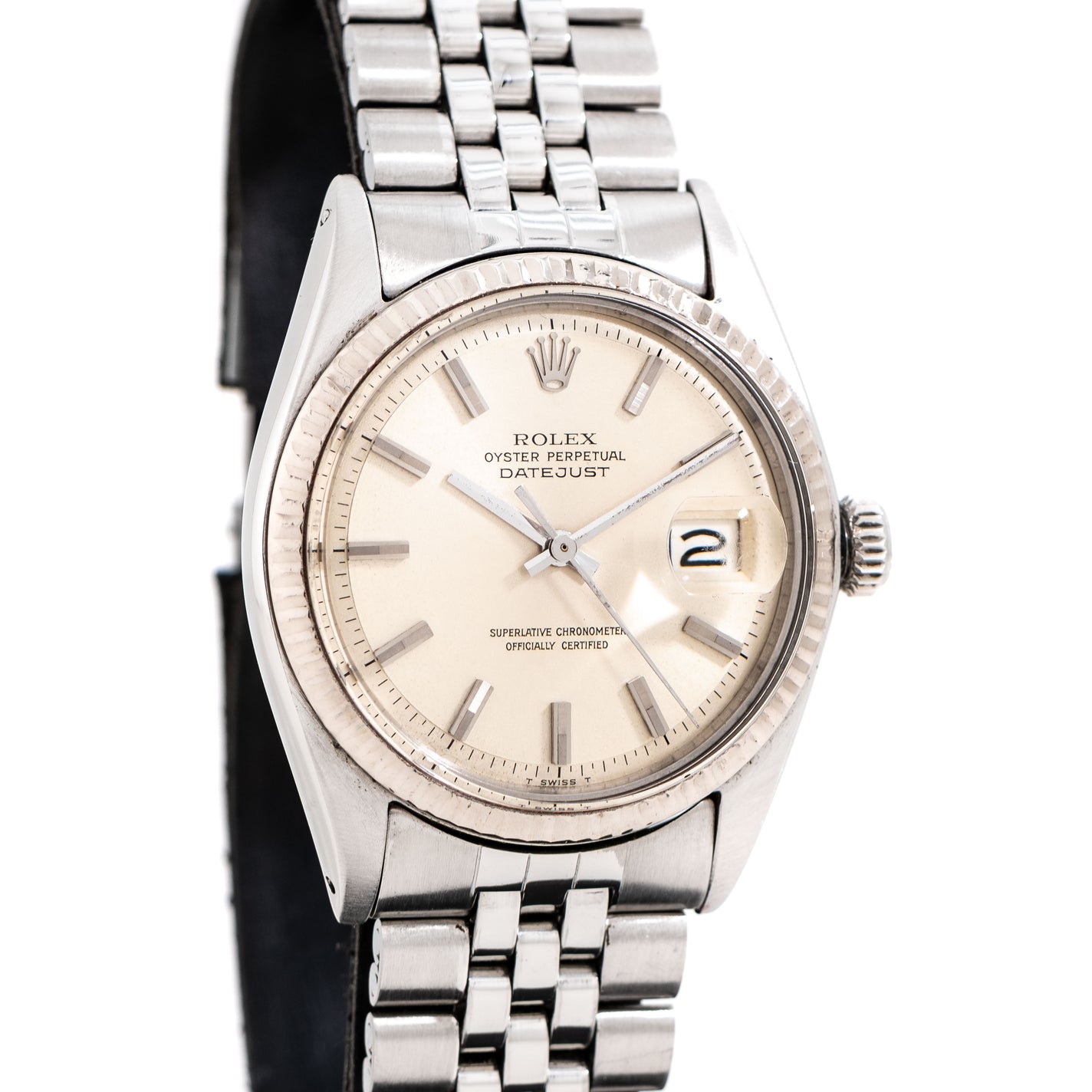 1968 Vintage Rolex Datejust No Lume Dial Ref. 1601 in 14k White Gold & Stainless Steel (# 15634)