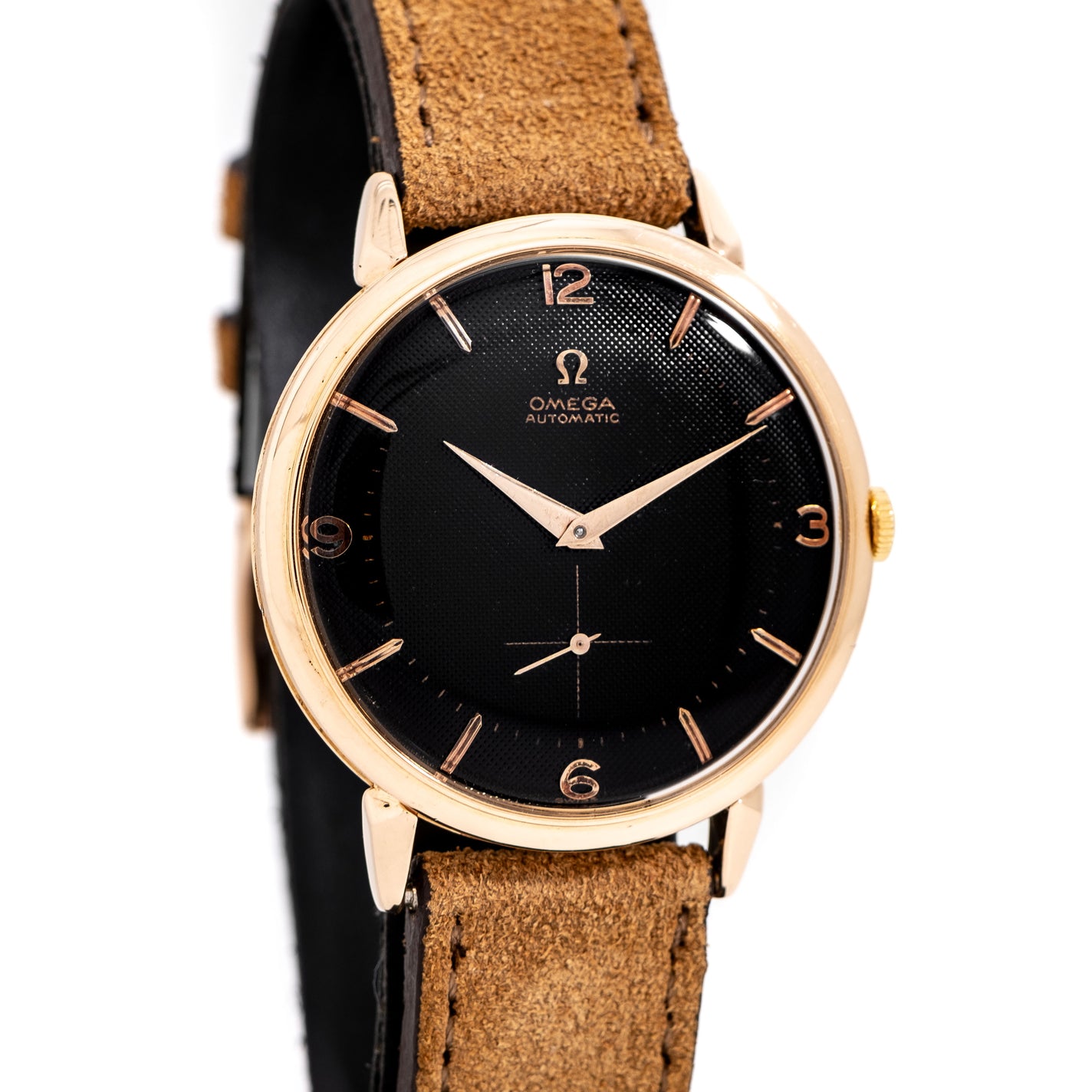 1952 Vintage Omega Oversized "Waffle" Dial Ref. 2714 Solid 18k Rose Gold Watch (# 15608)