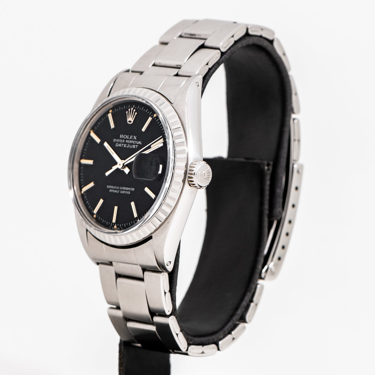 1969 Vintage Rolex Datejust Matte Black Dial Ref. 1603 Stainless Steel Watch (# 15765)