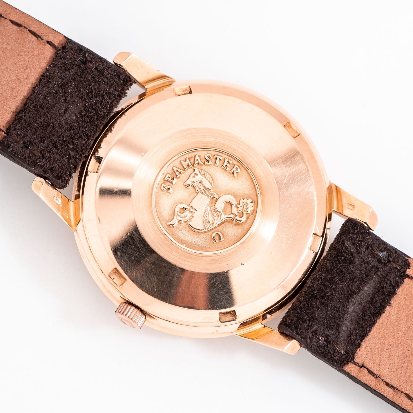 1963 Vintage Omega Seamaster Ref. 166.003 RARE Solid 18k Rose Gold Watch (# 15555)