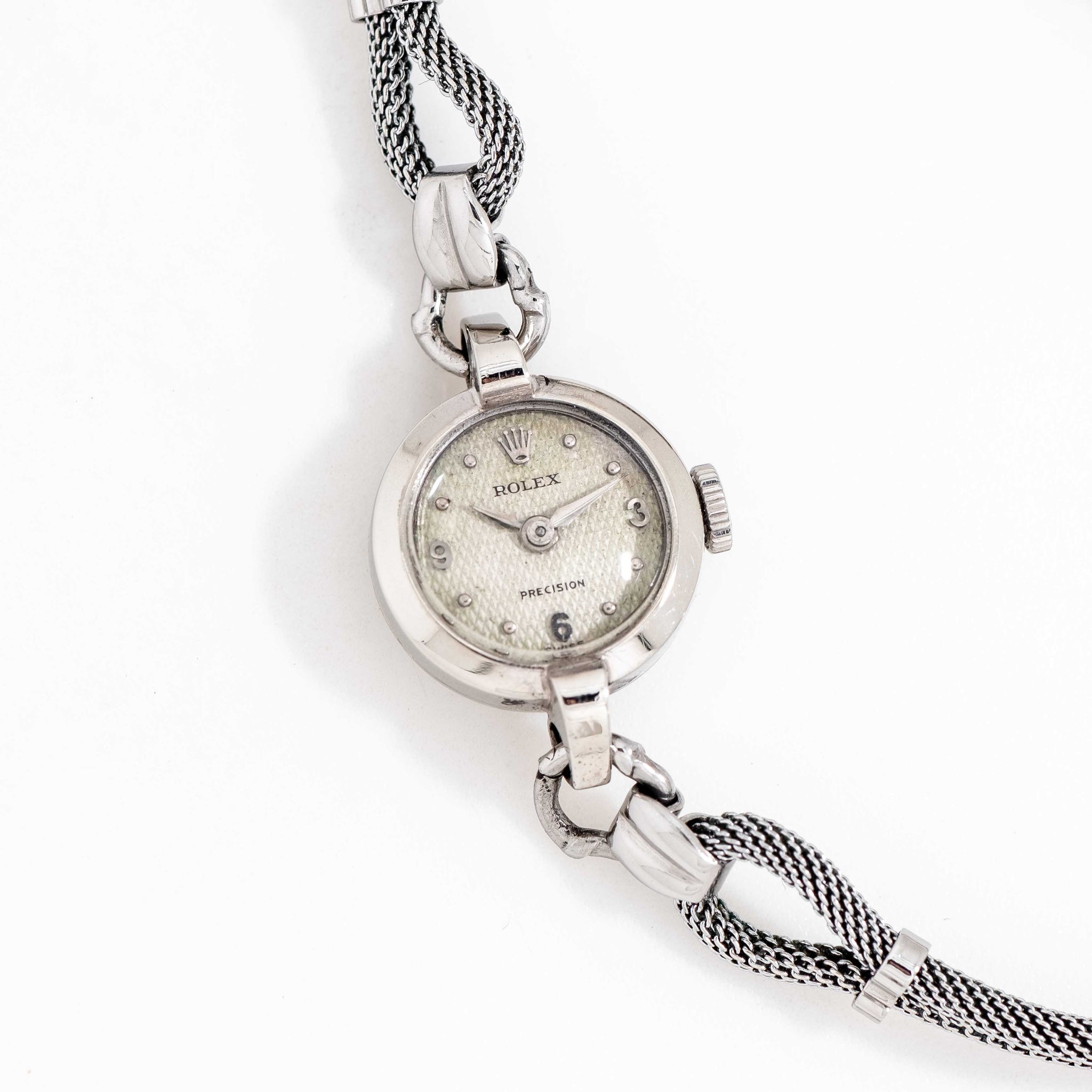 1940's Vintage Ladies Rolex Precision Waffle Dial 10k White Gold Watch (# 15532)