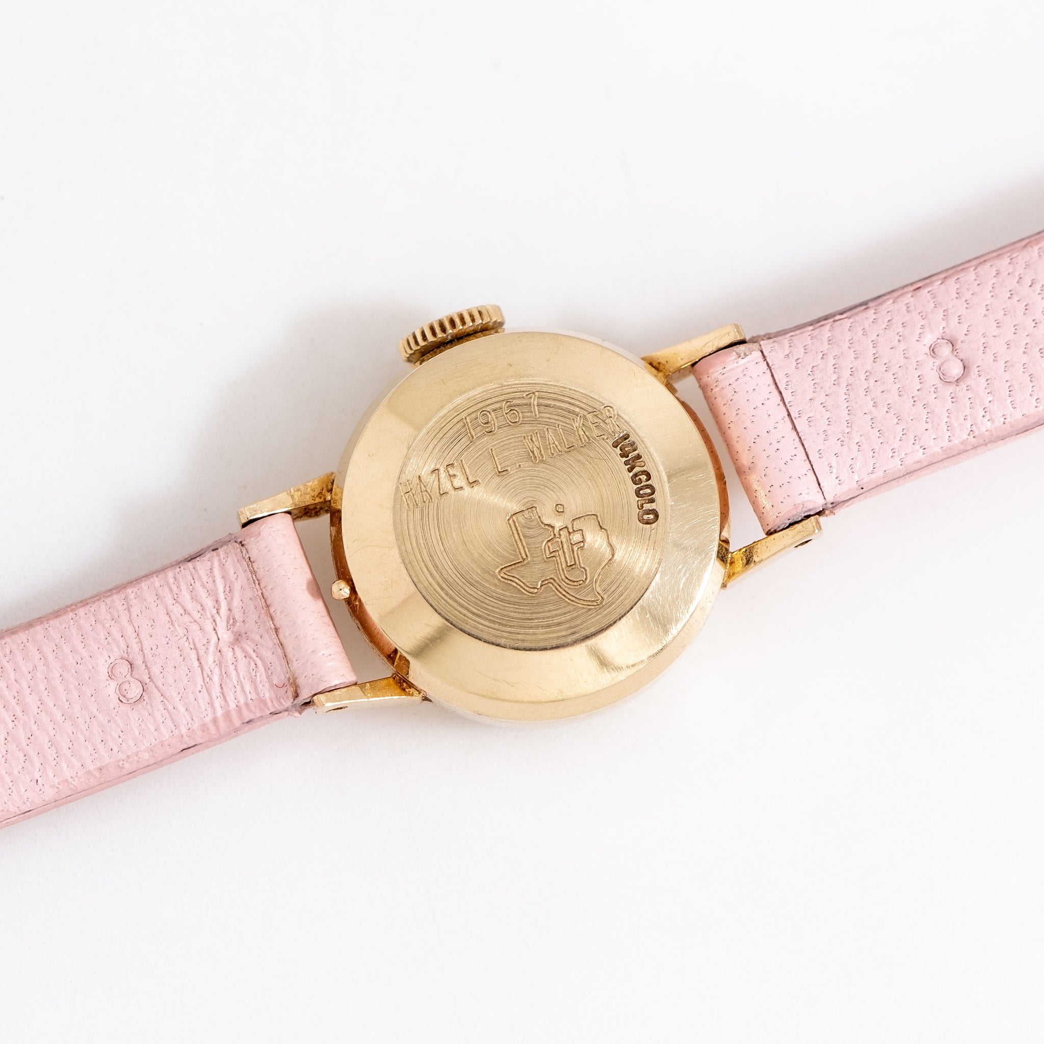Excellent Condition Case, Original Crown, Original Case Back // # 11XXX // Case Back Engraved 1967 HAZEL L.WALKER" with Logo of Texas Instruments. |
