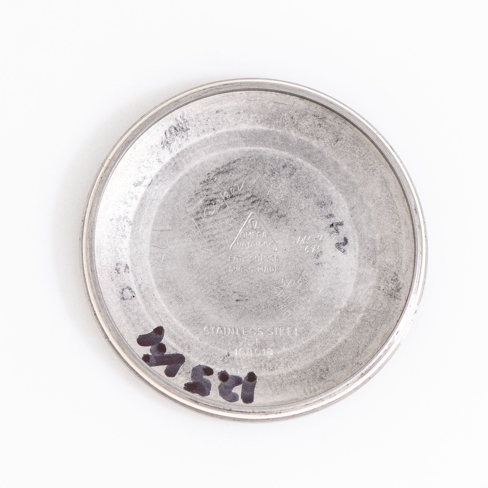 Original Omega Dial, Applied Yellow Gold Colored Baton Markers with Black Colored Accents, Date Window at the 3 o Clock Position, Printed Black Colored Minute Track |