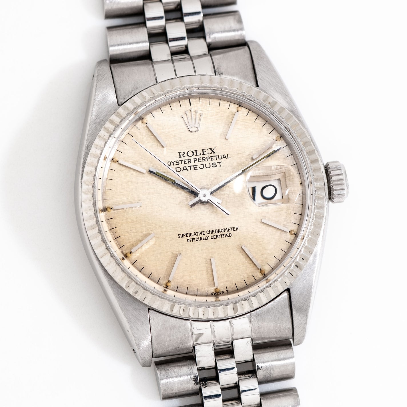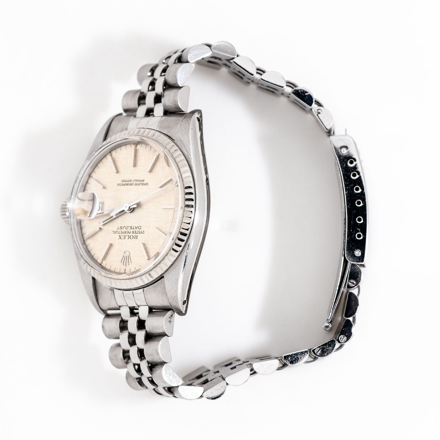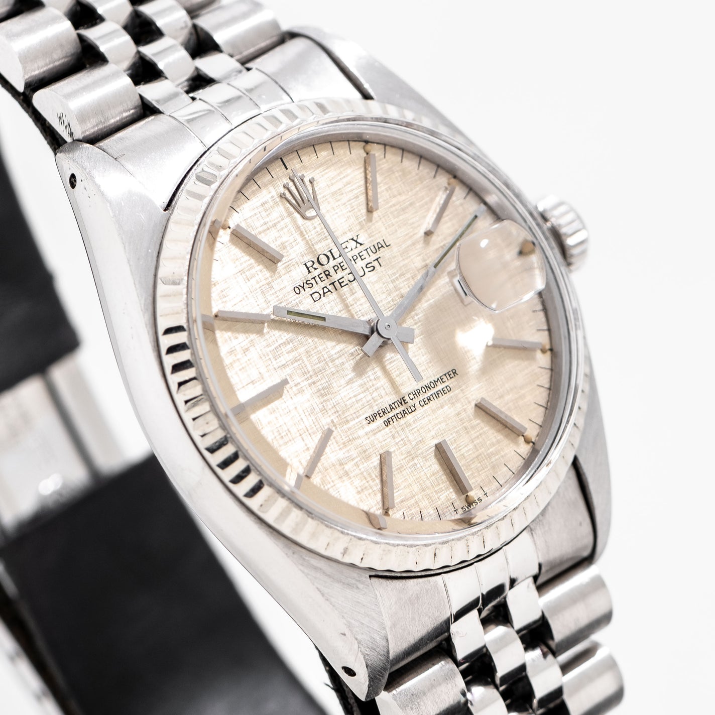 1980 Vintage Rolex Datejust Linen Dial Ref. 16014, 18k White Gold & Stainless Steel Watch ( #15691)