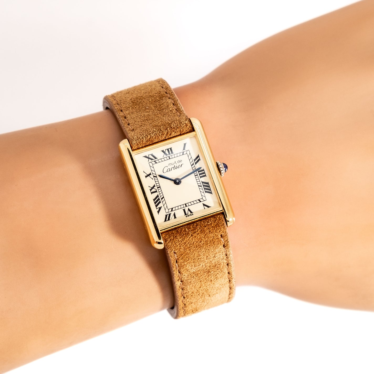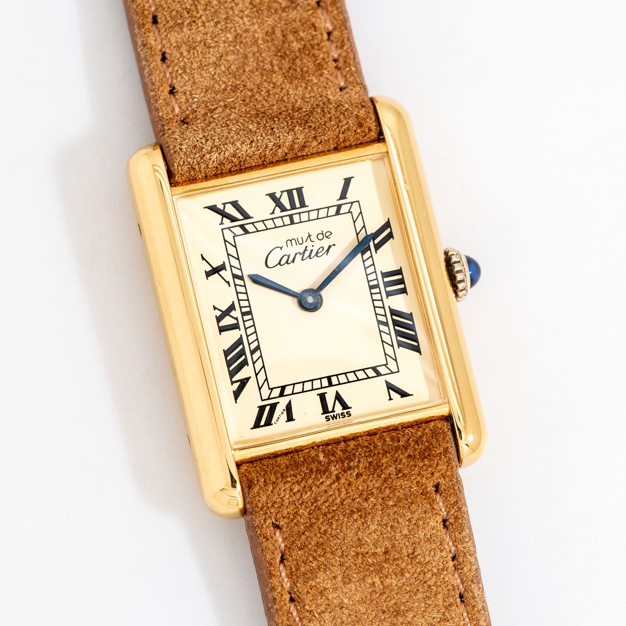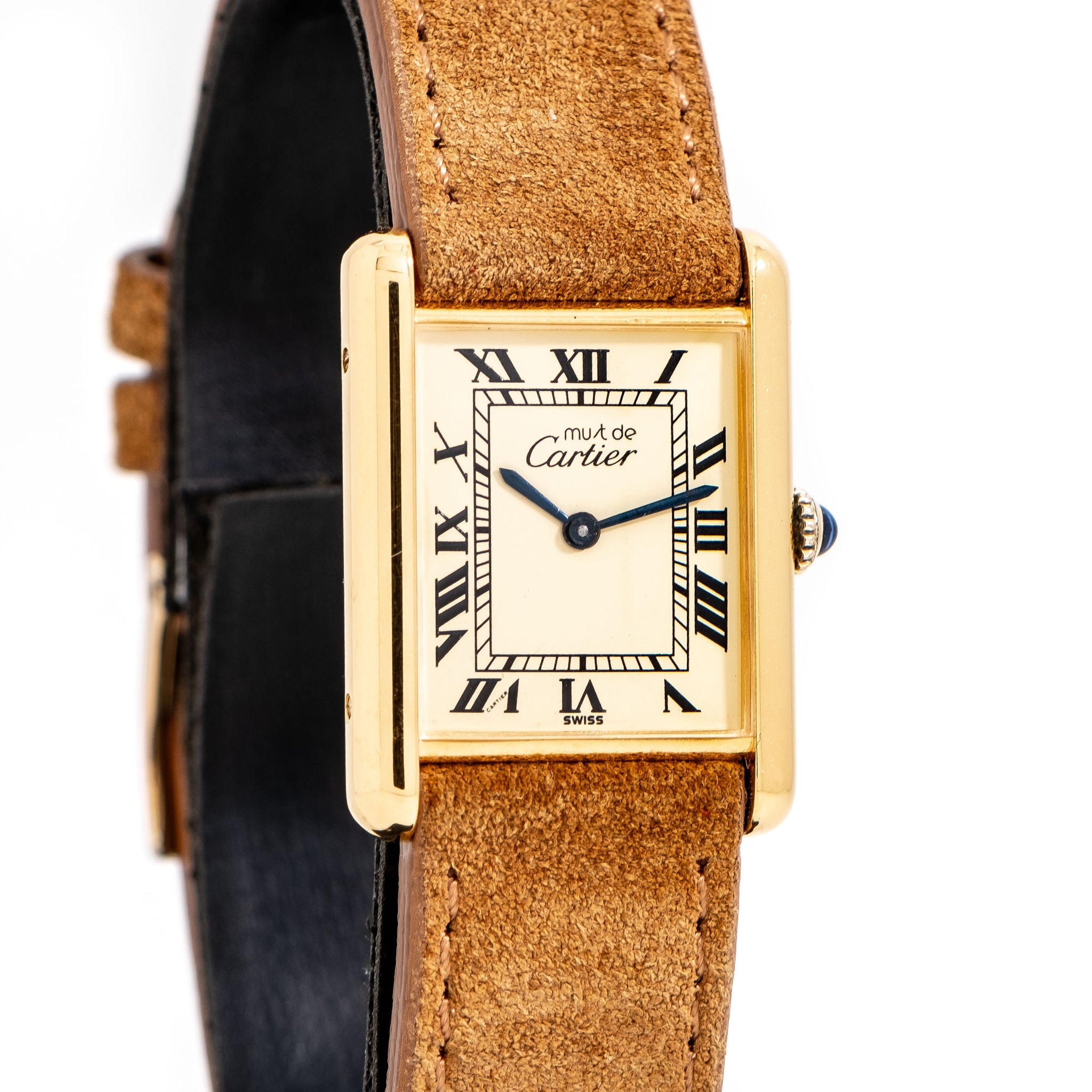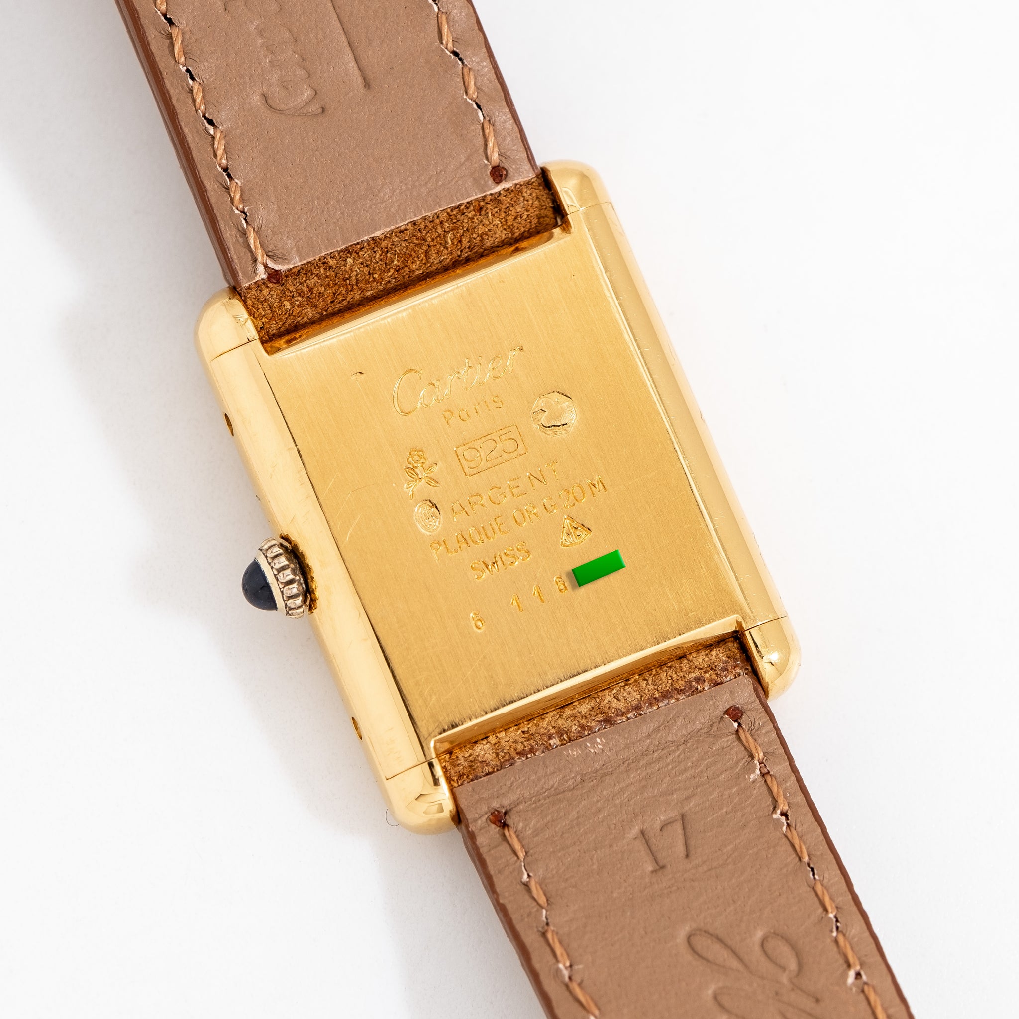 1990's Cartier Tank Must De 18k Yellow Gold Plated over Sterling Silver Watch (# 15641)