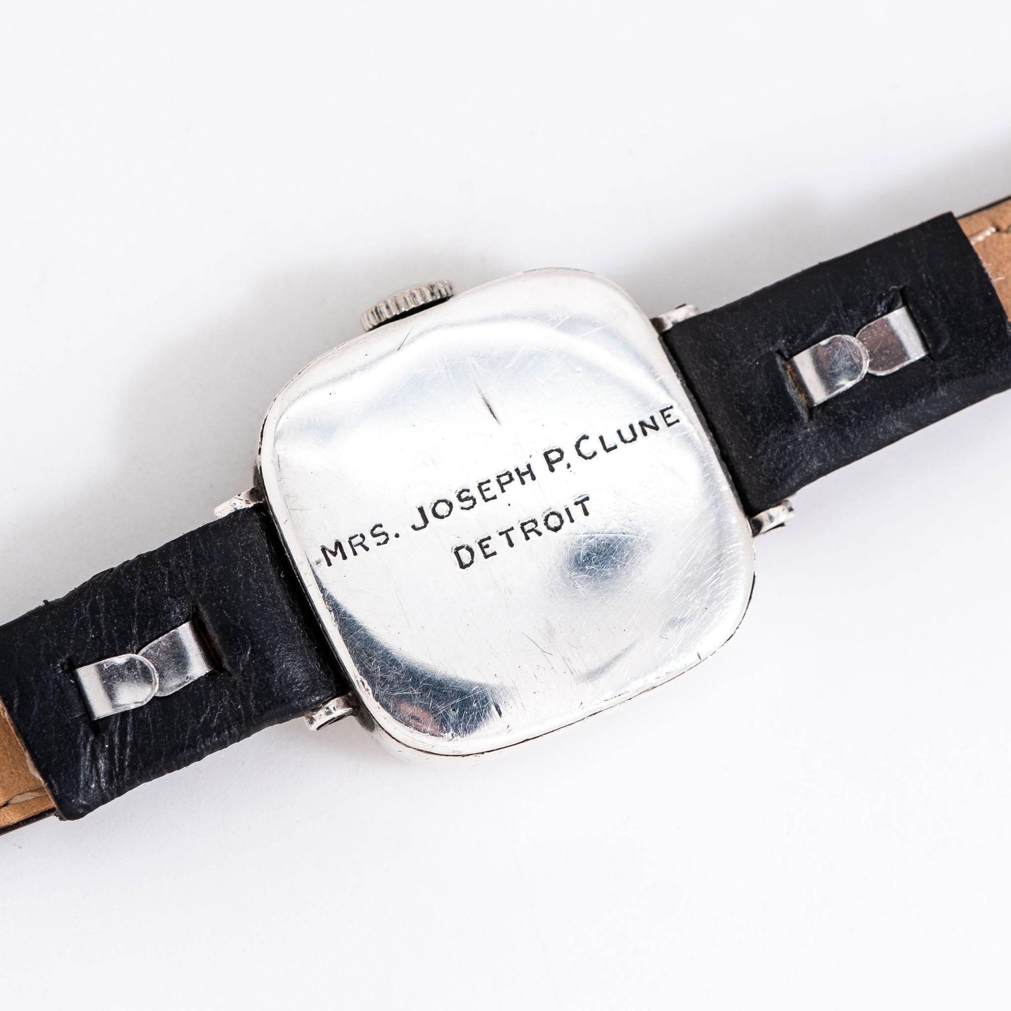 | Case | Case Original, Original Bezel // Case Back Engraved "Mrs. Joseph P. Clune Detroit" |